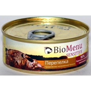 BioMenu Сенситив консервы для кошек паштет с Перепелкой