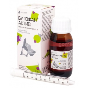 Бутофан Актив 50 мл - пероральная кормовая добавка для кошек и собак для восполнения дефицита энергии, нормализации обмена веществ, стимуляции физической активности и улучшения пищеварения.
