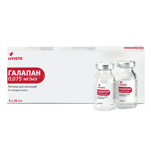 При прерывании беременности у коров при патологии плода Галапан вводят в дозе 2 мл (150 мкг d-клопростенола).