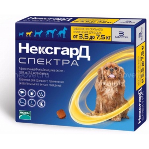 О товаре Нексгард Спектра S для собак 3,5-7,5 кг, уп. 3 таб.